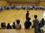 馬宮地区在住の65歳以上の方および馬宮地区老人協議会会員の方を対象に、高齢者の介護予防対策の一環として、 体力向上と健康寿命を延ばすことを目的に、毎年開催している馬宮地区社会福祉協議会主催の恒例行事のひとつです。地域包括支援センター指導による健康講和と簡単な体チェックおよび健康体操を行う「健康教室」とお楽しみ「ペットボトルボウリング大会」の二本立てになっているこの事業は、毎回120名以上の参加がある人気の事業で、平成20年方ずっと継続されています。 最近では、スタッフ側の高齢化も進み、地元中学校の先生と生徒さんにボランティアとして参加お手伝いをしていただいています。若い声援に後押しされて大変に盛り上がり、世代間交流にもなっています。