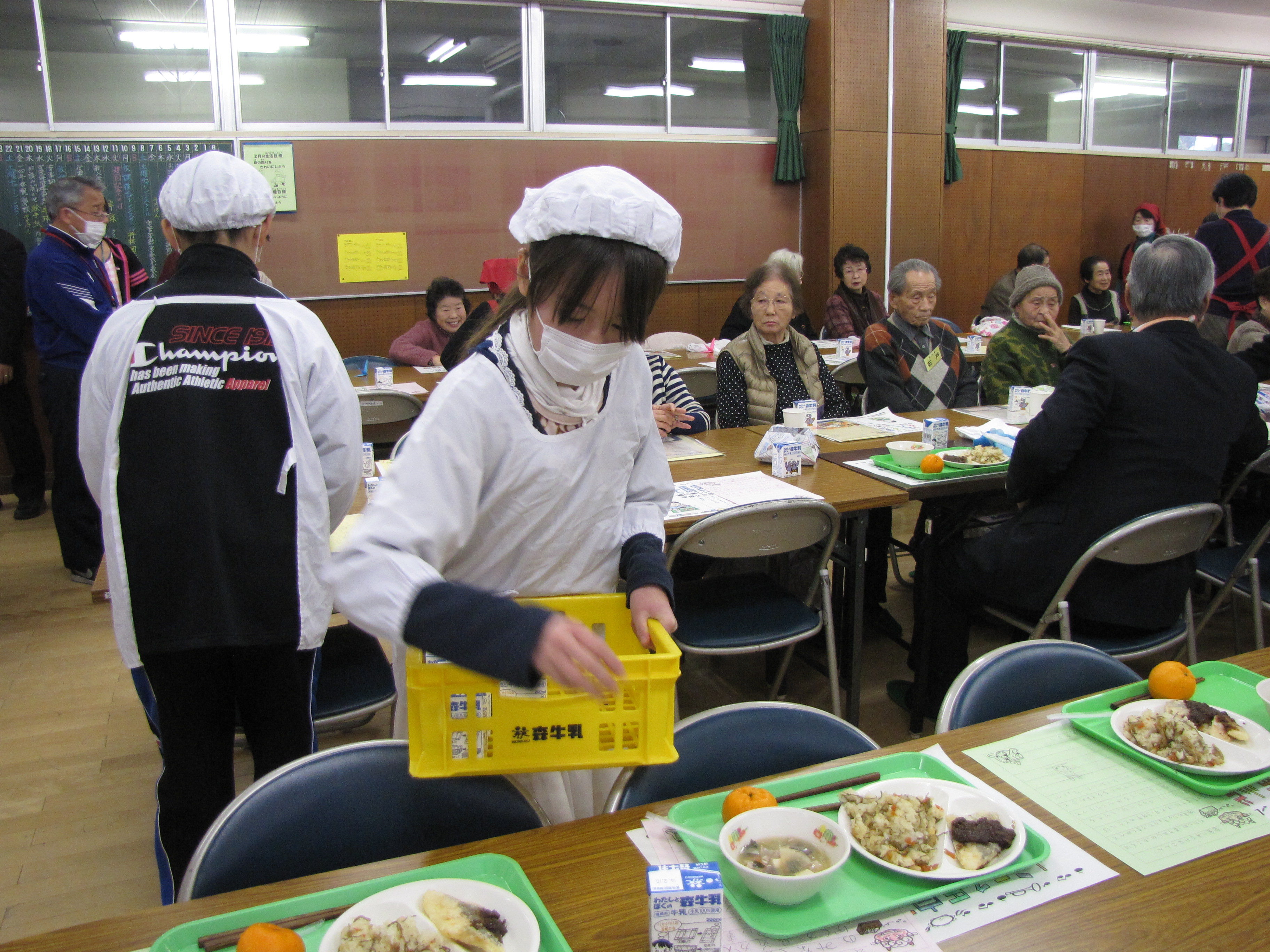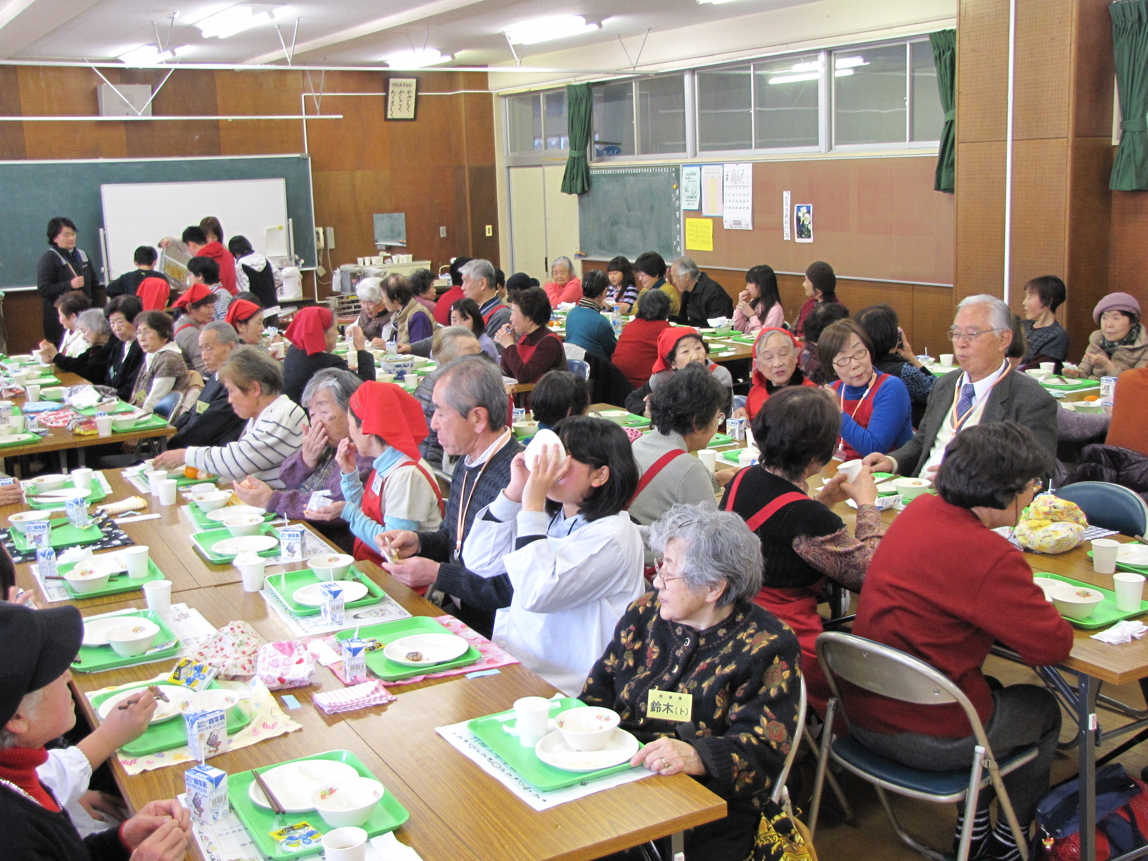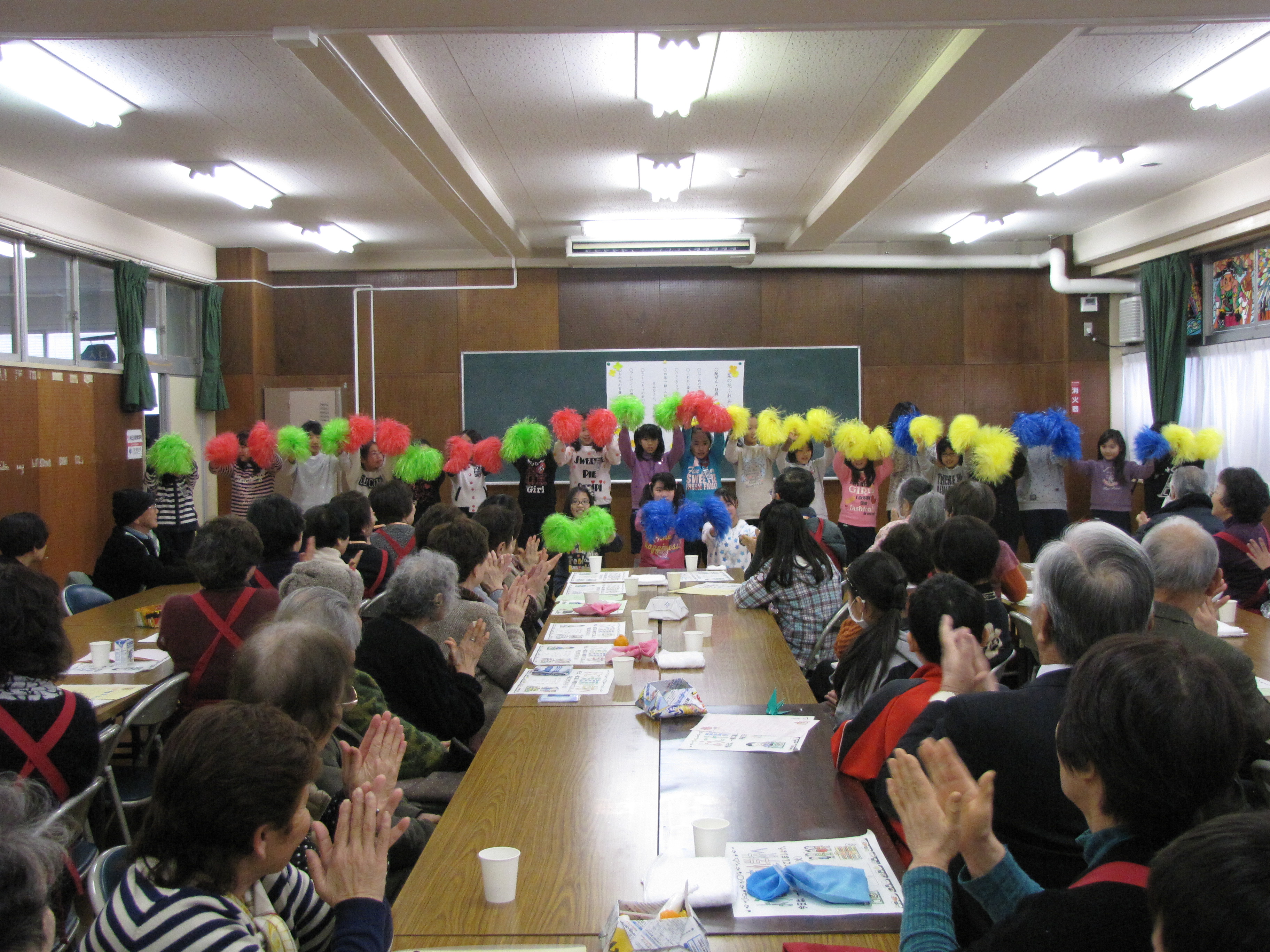 創立140年以上になるこの伝統ある小学校は、会食の集いにみえる高齢者の中には、「母校」となる方もいらっしゃいます。「懐かしさと、子ども達から元気をいっぱいもらえるので、毎年この日をとても楽しみにしています」と高齢者のかたがたには大変喜ばれています。