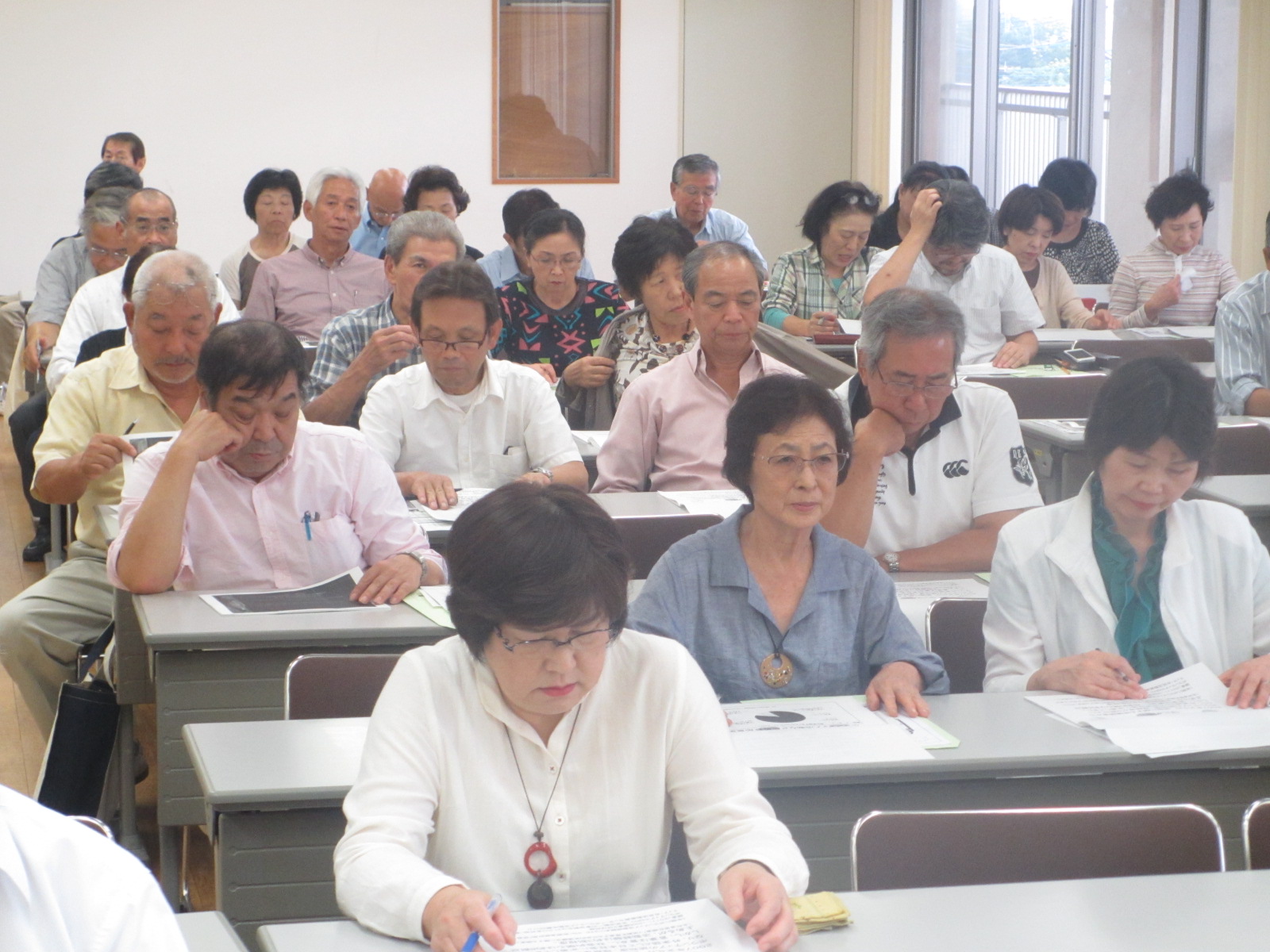 平成26年10月4日(土)、馬宮コミュニティセンターの第2〜4集会室において、ボランティアとは? 活動をしたいけど、どのように始めたらよいのか、きっかけがつかめない・・・また自分がどんなボランティアに向いているかわからないなど、各自治体の福祉委員をはじめ、ボランティアに関心のある地域住民52名が参加、先生の話に聞き入っていました。