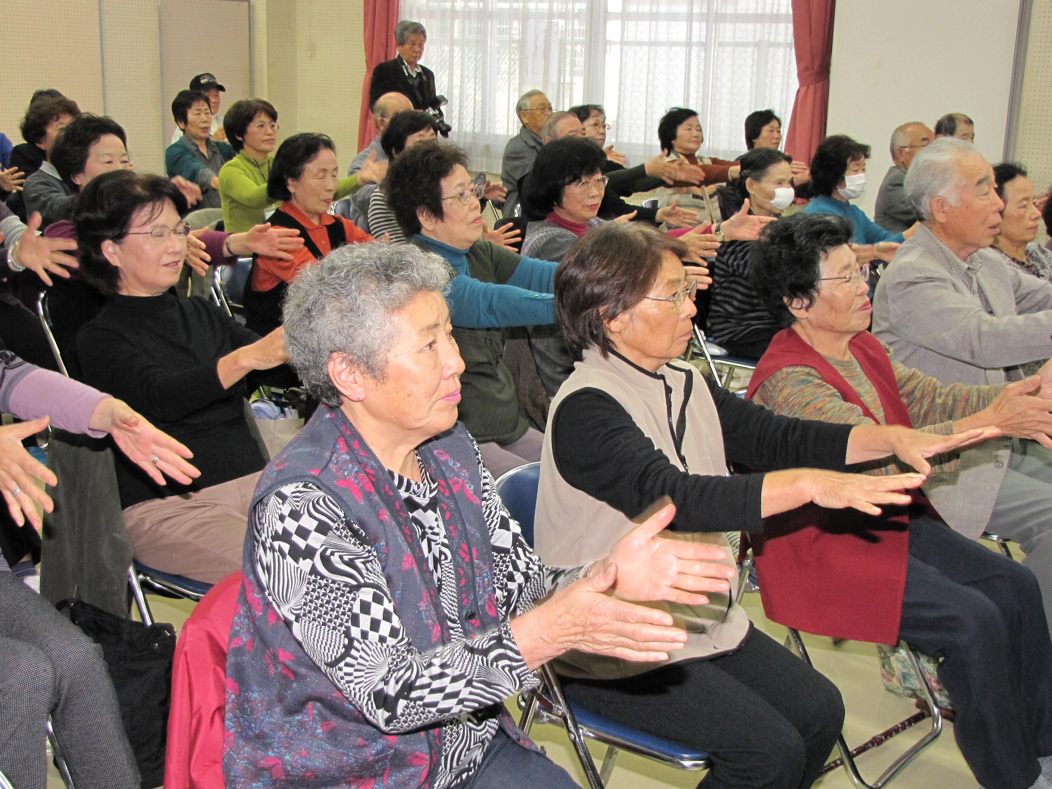 講演の後は、磯貝 和子先生によるリズム体操でリフレッシュ、思わず笑顔のこぼれる楽しい時間を過ごすことが出来ました。